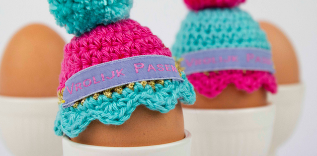 Knit, crochet, or buy a small hat for the egg and finish it with a woven name label. This gives your creation a luxurious touch and makes it perfectly suited to your style.